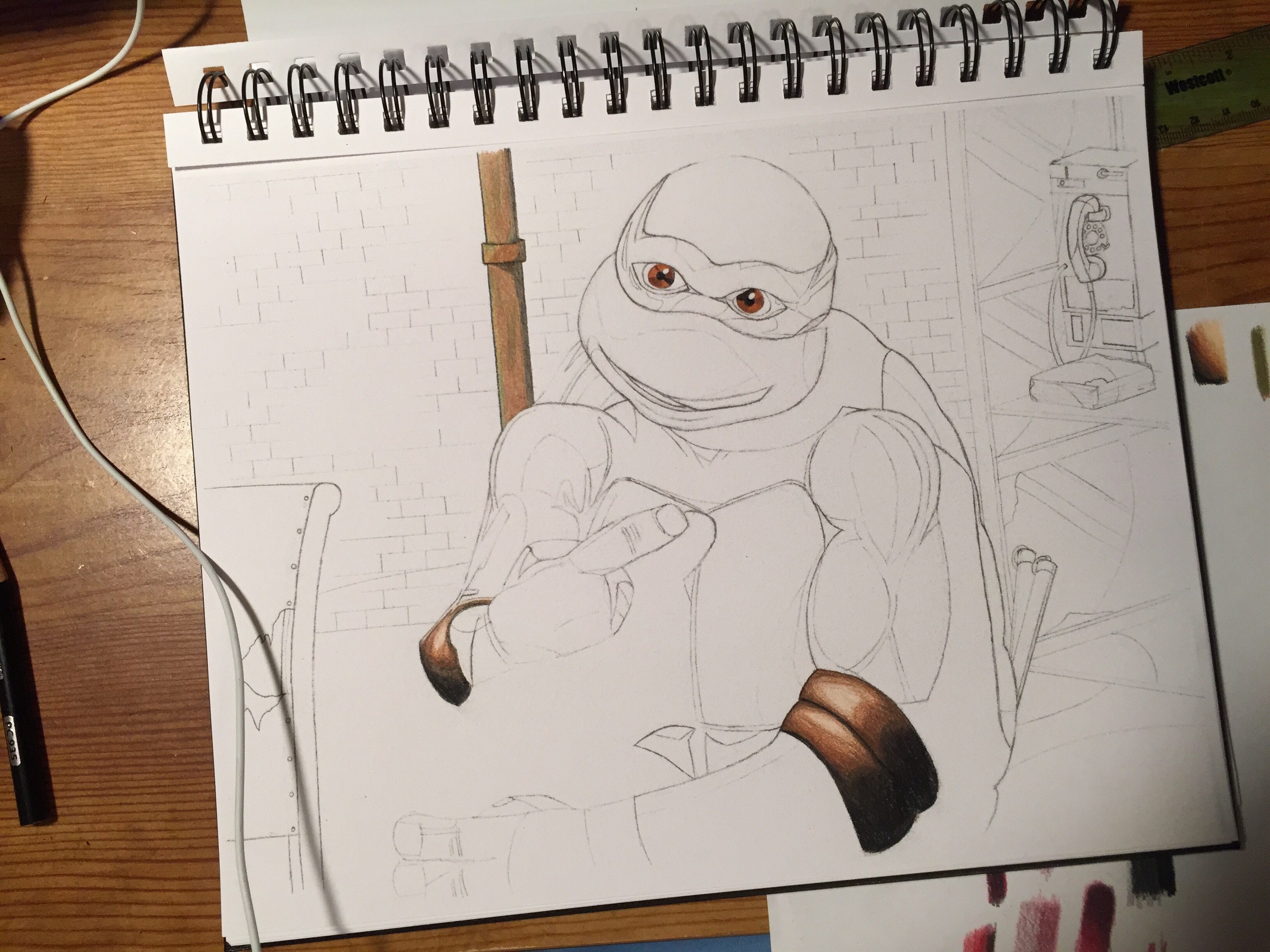 Coloring Michelangelo January 31, 2015 Katie Younkins Artworkcoloredpencil, drawing, fan art Mikey will be finished soon, and will join his brothers in my shop! Share this: Click to share on X (Opens in new window) X Click to share on Facebook (Opens in new window) Facebook Like Loading...