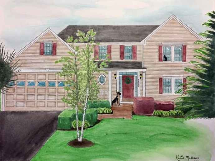 A picture of your home is a nice way remember the place you grew up, or the home you raised your family in. Maybe you put a lot of work into renovation. Perhaps you like to see your home with the beautiful flowers in bloom. I like to include family pets in these watercolor house portraits. I can also do a pencil drawing with lots of nice shading. Makes a great gift for new home owners.
